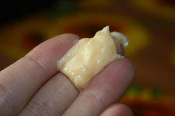 Открыв баночку дома, я увидела густую массу красивого насыщенного желтого цвета. Запах был довольно выразительный, как и во всех продуктах марки Garnier. Пожалуй, запах, это единственное, из-за чего раньше я покупала шампуни и другие средства этой фирмы.